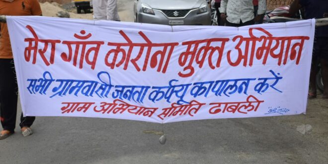 इंदौर ज़िले में ग्राम वासियों की एक ऐसी जागरूकता देखने को मिली जिसका अनुकरण प्रदेश के अन्य ग्रामों में भी होने की कामना इंदौर के प्रभारी मंत्री श्री तुलसी सिलावट ने गांव की दहलीज़ पर खड़े होकर की। सांवेर जनपद के ढाबली गांव में प्रवेश करने वाला रास्ता ग्राम वासियों ने बैरिकेडिंग करके रोका हुआ है। आज इंदौर के प्रभारी मंत्री श्री तुलसी सिलावट और कलेक्टर श्री मनीष सिंह जब भ्रमण के दौरान यहाँ पहुँचे तो वे भी इस बैरिकेडिंग को लाँघ नहीं पाए। ग्राम वासियों ने मेरा गाँव कोरोना मुक्त गाँव बनाने के लिए जी जान से जतन किया है।