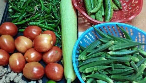1 पैकेट में 4 सब्जी जिसमे धनिया , मिर्ची,निम्बू, टमाटर, भिंडी, गिलकी/ लौकी और एक सीजनल सब्जी शामिल हो सकती है