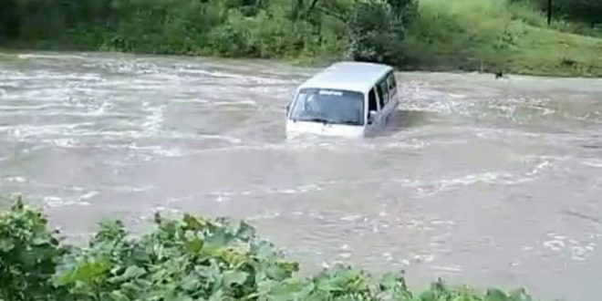 वैन में सवार एक बालक कूद गया और बाहर निकल आया, लेकिन वैन तेज बहाव के साथ बह गई.